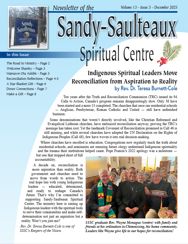 In this issue read about our new Wahkotowin Cultural Coordinator, why Indigenous leaders are essential to putting the TRC’s Calls to Action into practice, how traditional and Biblical teachings come together in a star blanket and more. Click on the front page below to open the newsletter.